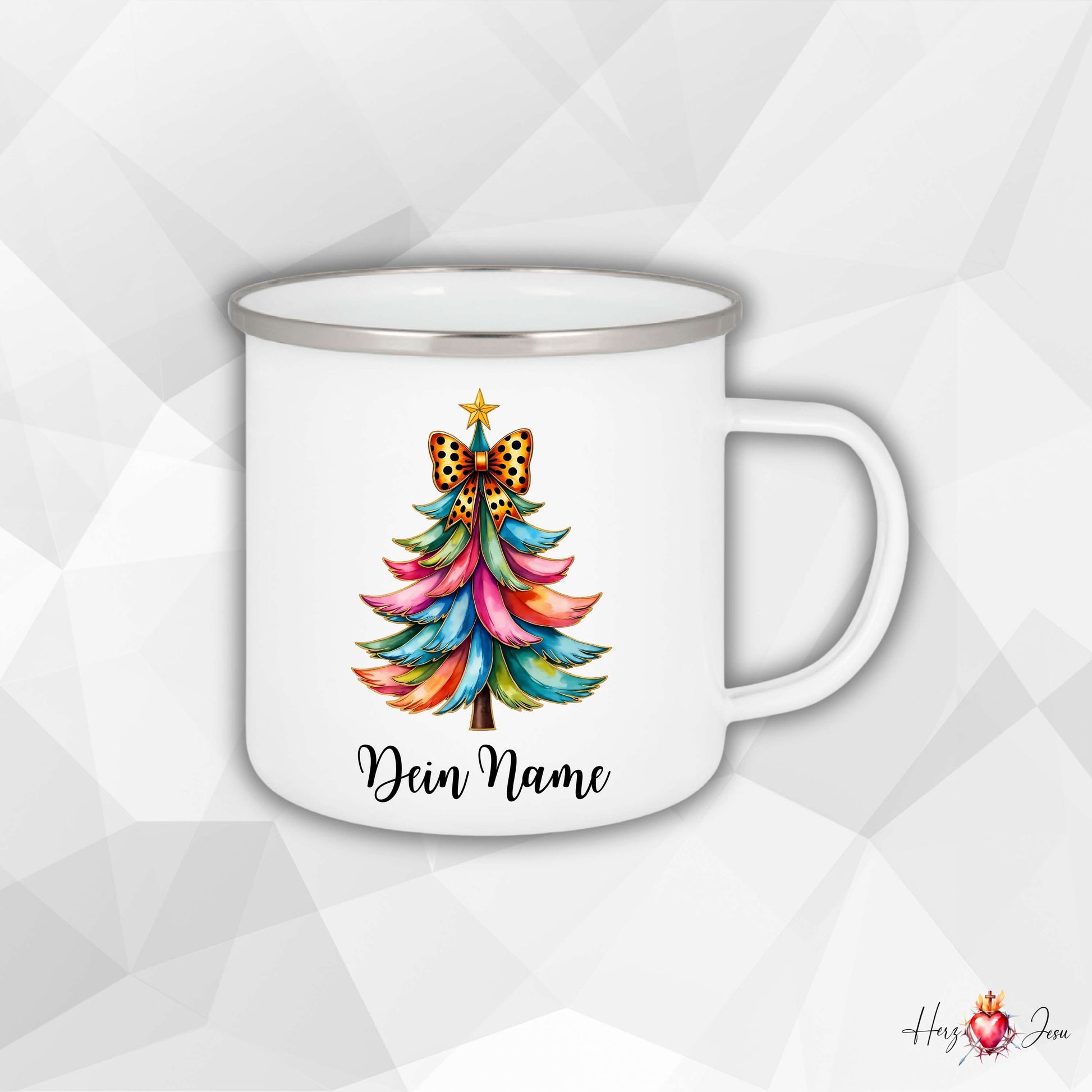 Personalisierte Emaille Tasse mit Namen Edelstahl Tasse Weihnachtstasse personalisiert Weihnachtsbaum Design als Geschenkidee_0030H