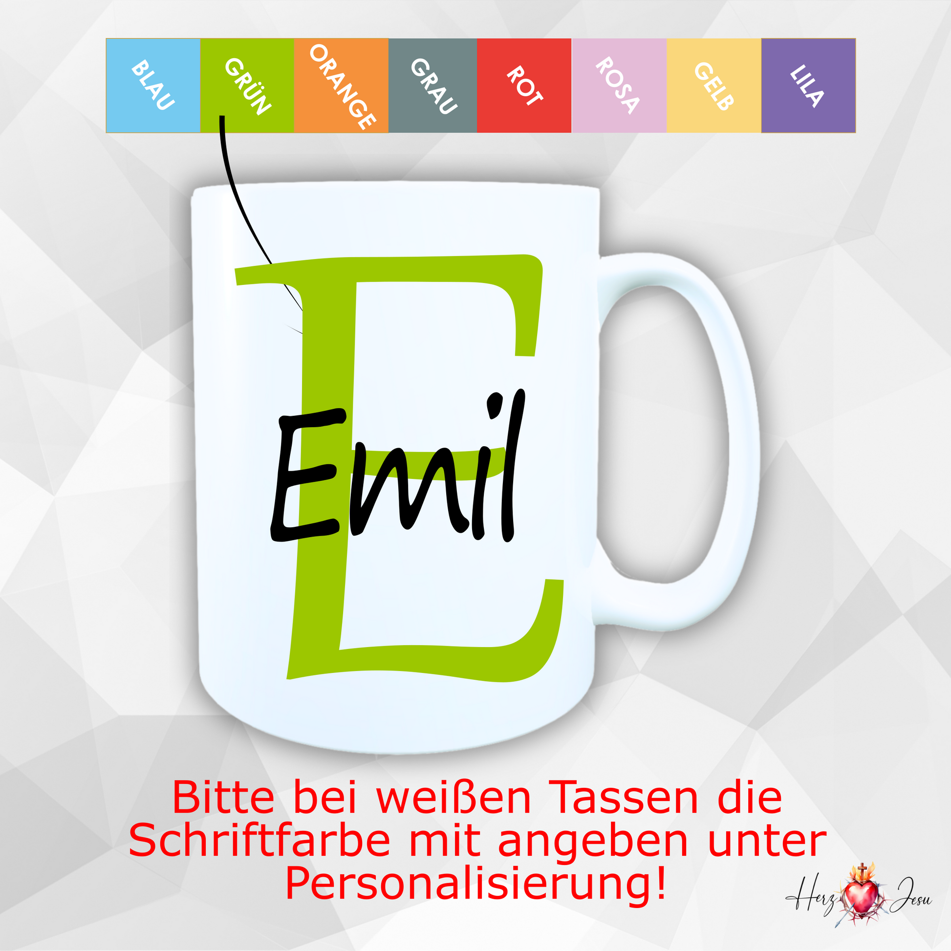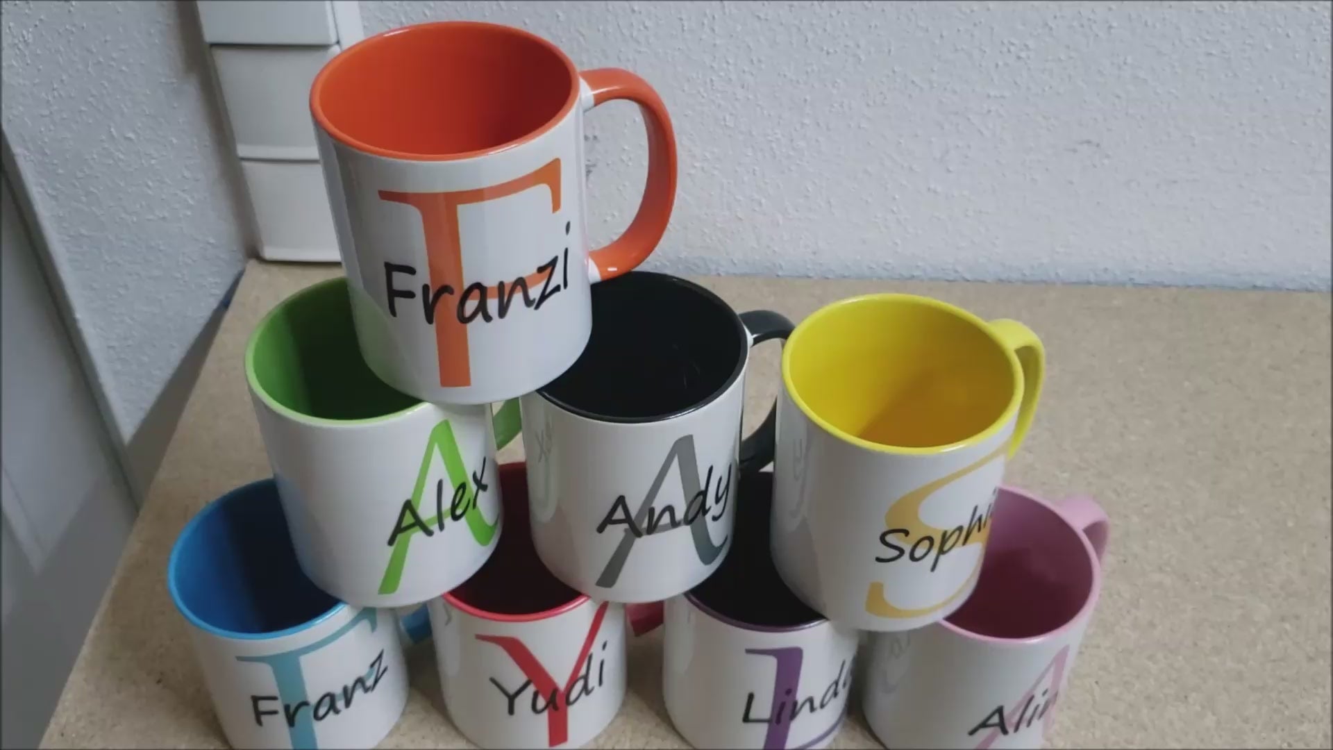 - Farbauswahl – 9 verschiedene Farben machen jede Tasse mit Namen zum Unikat