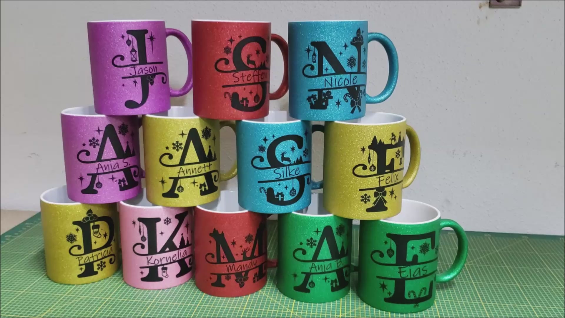 Personalisierte Keramik Weihnachtstasse mit deinem Namen Glitzertasse_0070T
